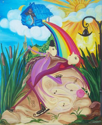 Titre: "Danse au coucher du soleil et arc-en-ciel"