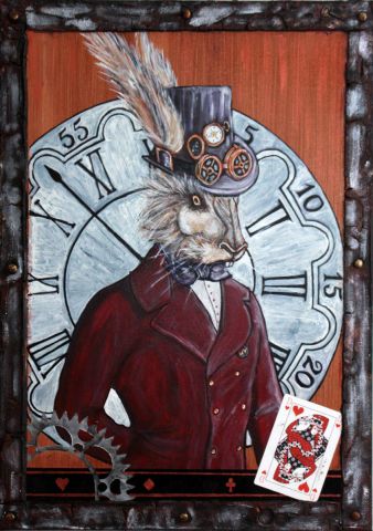 Mots clefs: LIEVRE DE MARS ALICE WONDERLAND STEAMPUNK DECO PEINTURE TOILE HUILE ACRYLIQUE SAM NATHANIEL MAGOTTEAUX